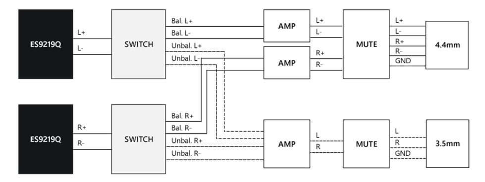 - 3.5mm and 4.4mm headphone outputs for unbalanced and balanced listening