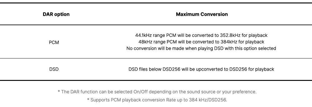 DAR technology is developed to upsample the sample rate of the sound source being played to go beyond the limits of the source format.